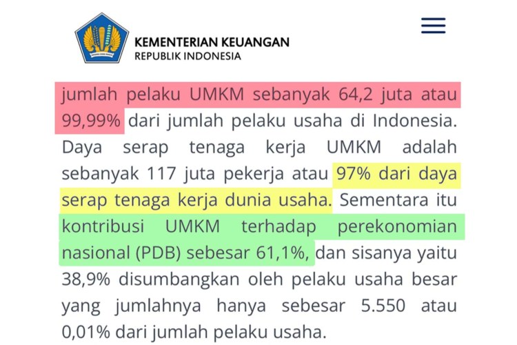 Data Kementerian Perekonomian menunjukkan bahwa UMKM memiliki peran signifikan dalam pertumbuhan ekonomi karena: